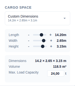Create custom cargo spaces from 0.5m to 20m in length. Perfect for unique vehicles or specialized planning needs.