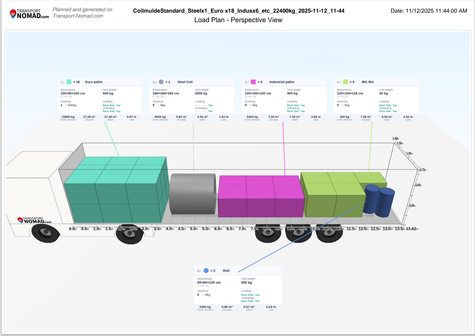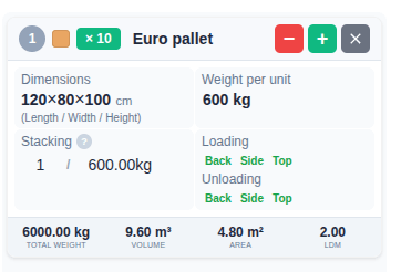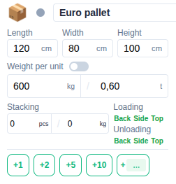 Absolutely! While we provide predefined units like EUR pallets, GitterBox, and IBC containers, you can create custom cargo units with your own dimensions, weight, stacking limits (maxStack), and loading/unloading methods. This flexibility allows you to plan loads for any type of cargo specific to your operations.